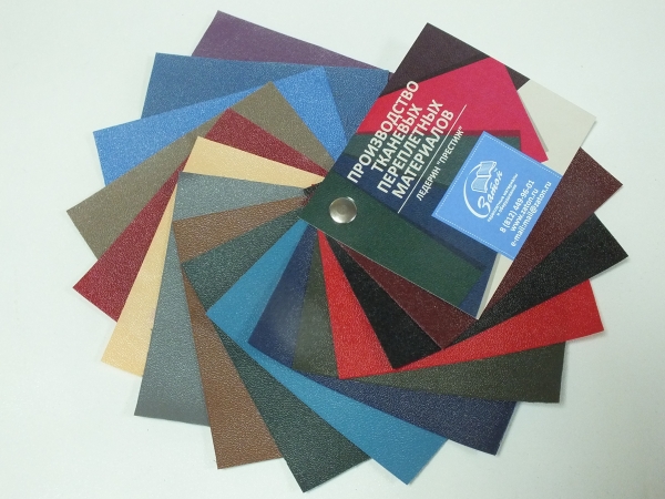 На сегодняшний день, цветовая гамма насчитывает 15 базовых цветов. Переплетный материал ледерин намотан в стандартные рулоны по 150 п.м. (или менее, по желанию заказчика) и имеет рабочую ширину 82 см.